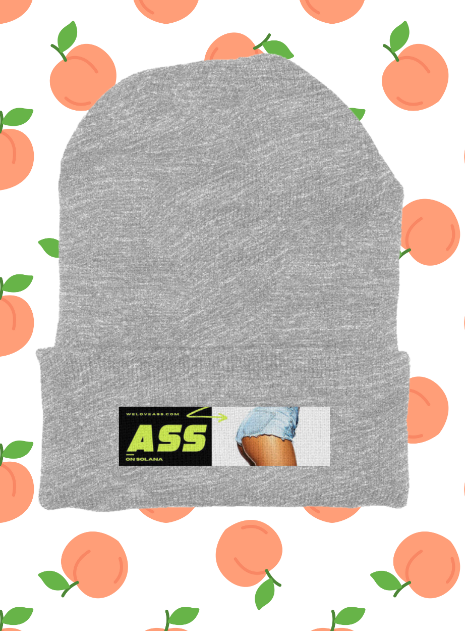 Stay warm while repping your favorite Solana token! This cozy beanie features our signature $ASS logo patch with that iconic denim peek - available in both heather grey and black.